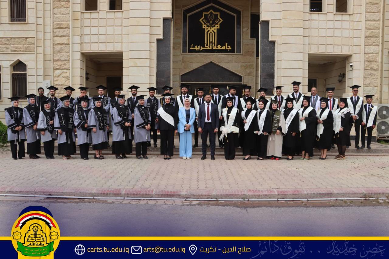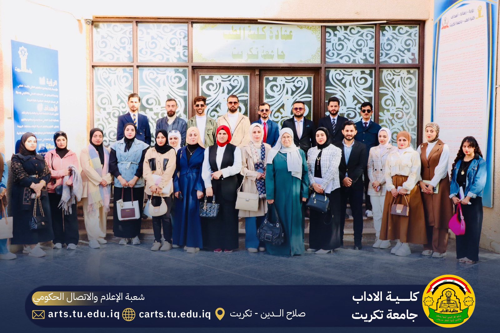 أُسست كلية الآداب في جامعة تكريت عام 2006، وتضم اليوم تسعة أقسام علمية تمنح شهادة البكالوريوس في التخصصات الآتية: اللغة العربية، التاريخ، اللغة الإنجليزية، الترجمة، الإعلام، الجغرافية التطبيقية، علم الاجتماع، الآثار، وعلم النفس.