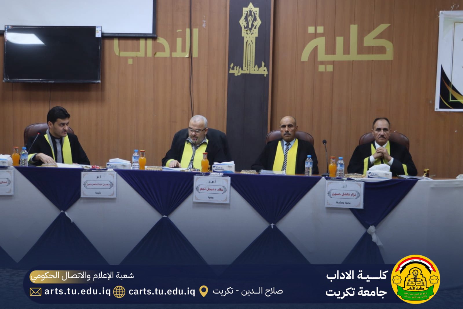 وقد حضر المناقشة ( ا.د. مربد صالح ضامن ) ، عميد كلية الآداب ،