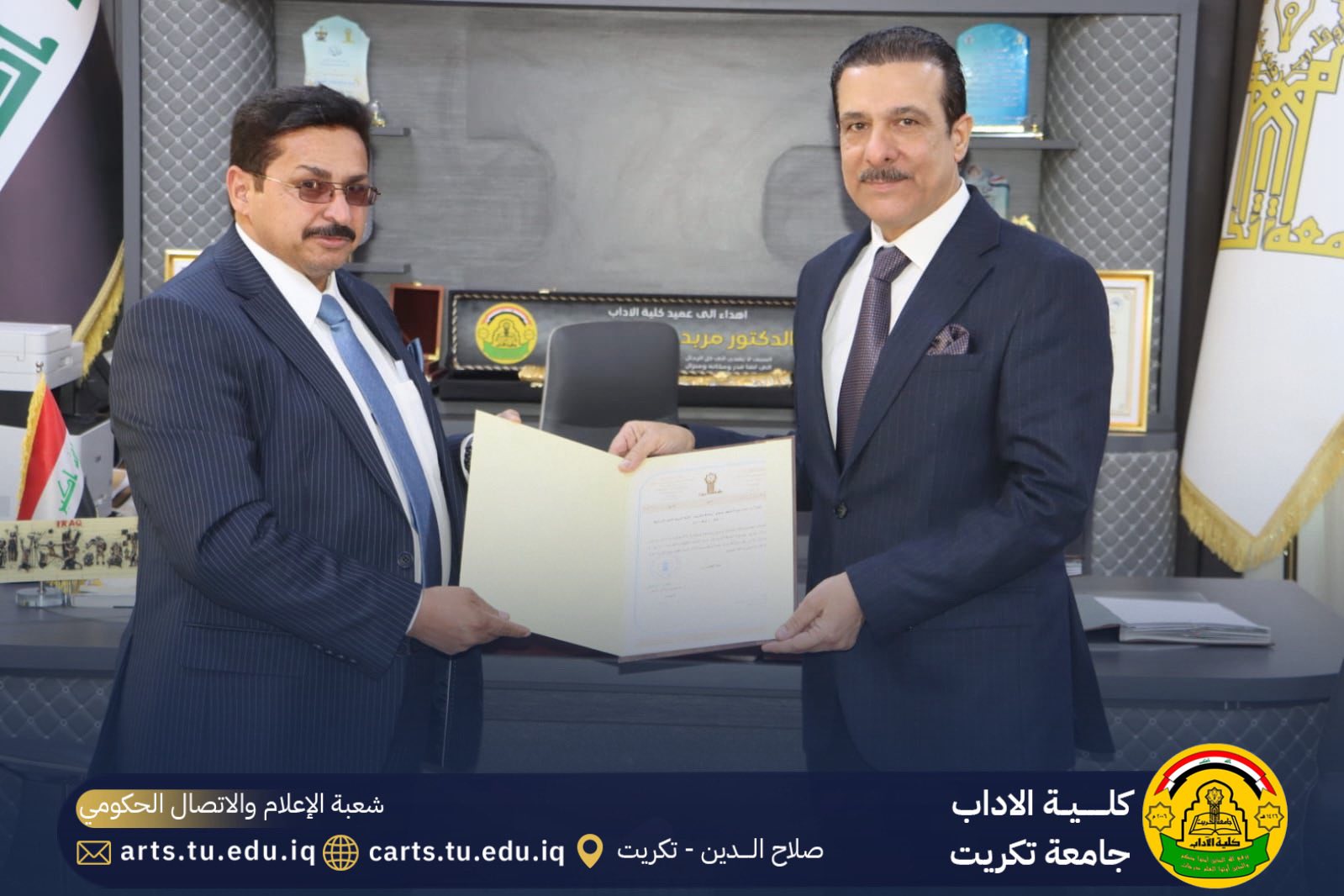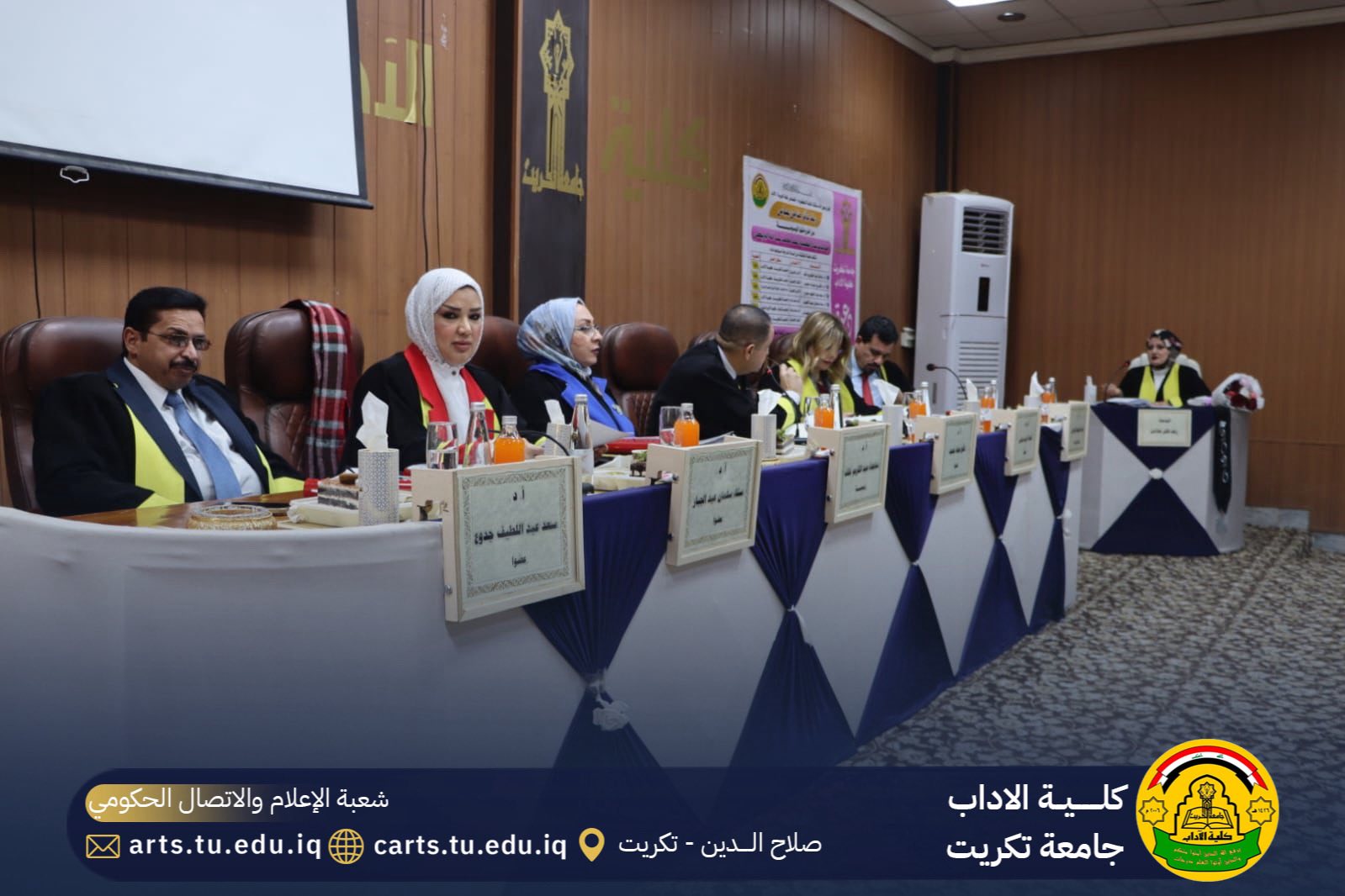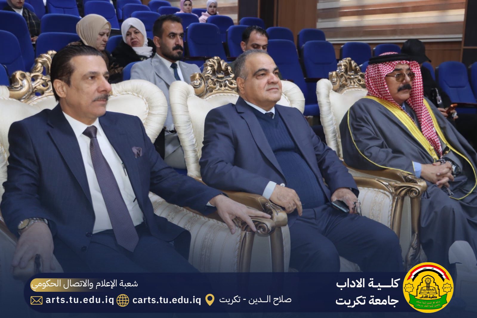 وقد حضر المناقشة السيد مساعد رئيس جامعة تكريت الاستاذ الدكتور حسن حسين ابراهيم و السيد عميد كلية الاداب الاستاذ الدكتور مربد صالح ضامن وعدد من تدريسيي الكلية وطلبتها.